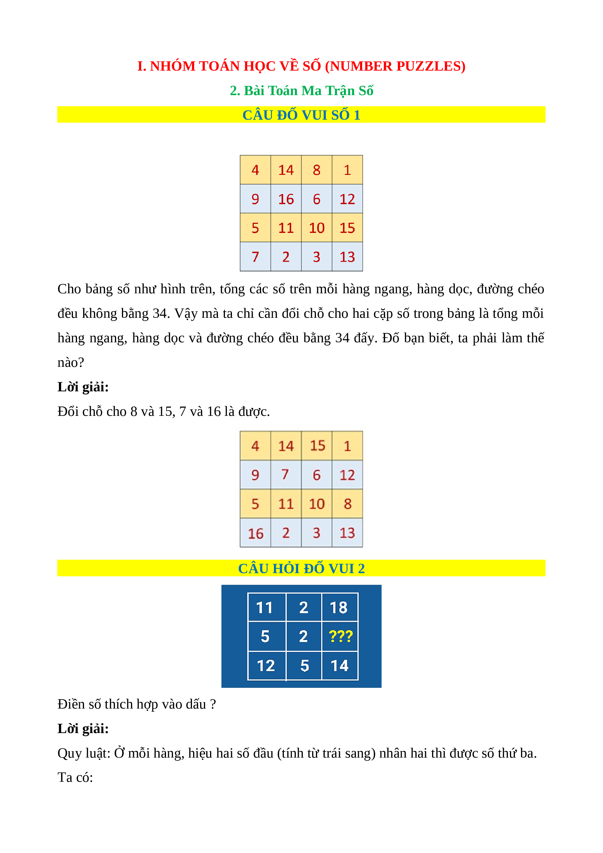 2. Bài Toán Ma Trận Số CÂU ĐỐ VUI SỐ 1