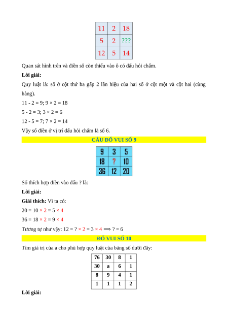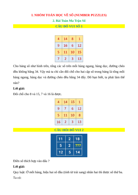 I. NHÓM TOÁN HỌC VỀ SỐ (NUMBER PUZZLES)