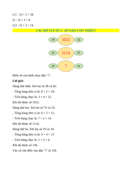 Điền số còn thiếu thay dấu "?". Lời giải: