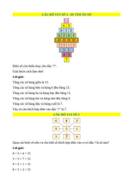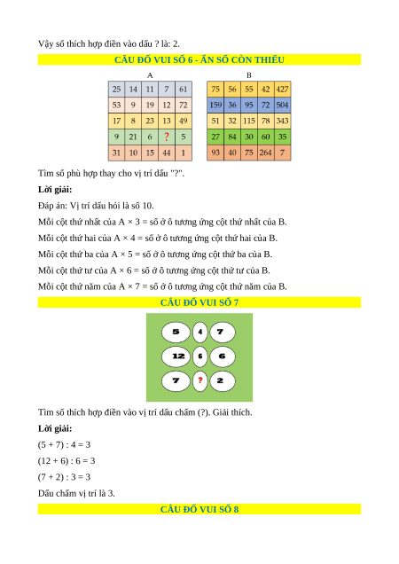 Vậy số cần thích hợp điền vào dấu "?" là 7. CÂU ĐỐ VUI SỐ 5