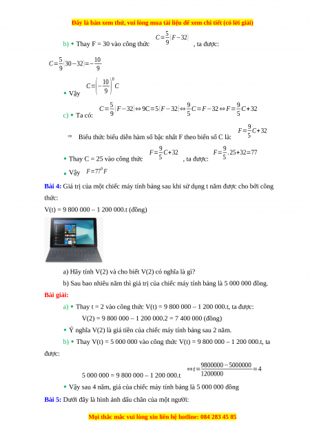Bài 4: Giá trị của một chiếc máy tính bảng sau khi sử dụng t năm được cho bởi công thức: