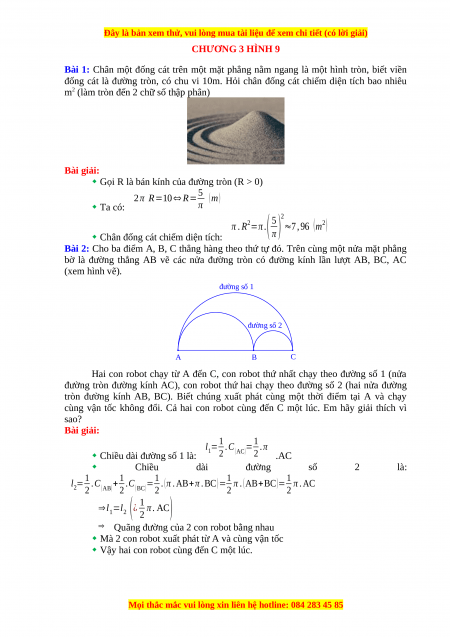 Bài 1: Chân một đống cát trên một mặt phẳng nằm ngang là một hình tròn, biết viền