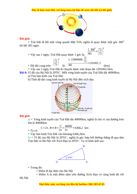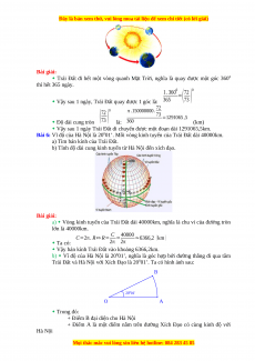 Bài 6: Vĩ độ của Hà Nội là 20001’. Mỗi vòng kinh tuyến của Trái Đất dài 40000km.