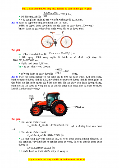 Bài 7: Bánh xe đạp bơm căng có đường kính là 73cm.