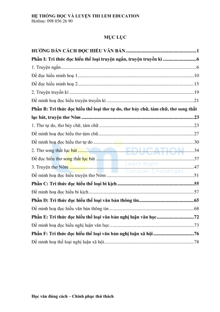 HỆ THỐNG HỌC VÀ LUYỆN THI LEM EDUCATION Hotline: 098 856 26 90