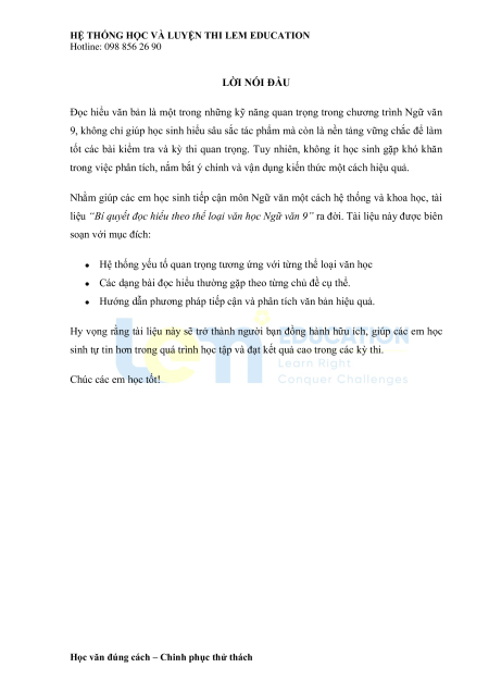 liệu “Bí quyết đọc hiểu theo thể loại văn học Ngữ văn 9” ra đời. Tài liệu này được biên soạn với mục đích: