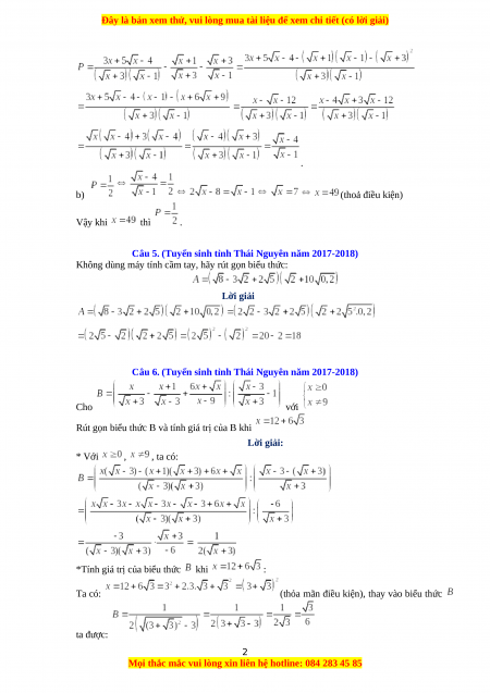 Câu 6. (Tuyển sinh tỉnh Thái Nguyên năm 2017-2018) Cho với