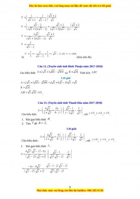 Đây là bản xem thử, vui lòng mua tài liệu để xem chi tiết (có lời giải)
