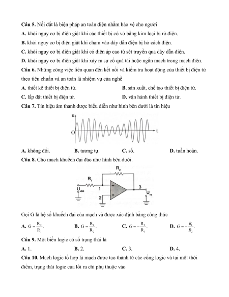 Bộ 10 đề ôn thi Tốt nghiệp Công nghệ (Định hướng Định Điện tử)