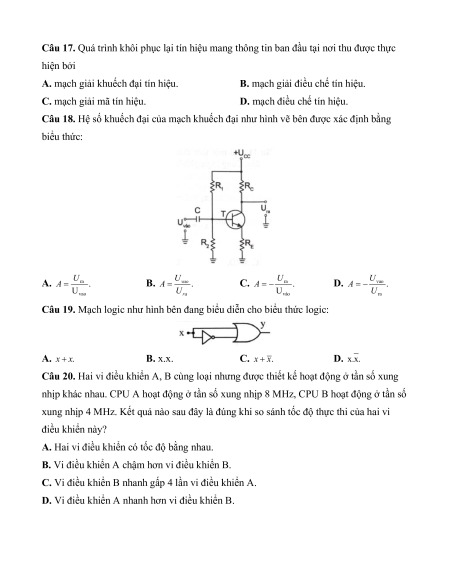 Câu 20. Hai vi điều khiển A, B cùng loại nhưng được thiết kế hoạt động ở tần số xung