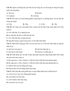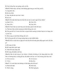 Câu 13. Độ mặn thích hợp cho hầu hết các loài cá nước ngọt là bao nhiêu? A. Dưới 5%%. B. Trên 10%. C. Dưới 20%. D. Trên 30%.