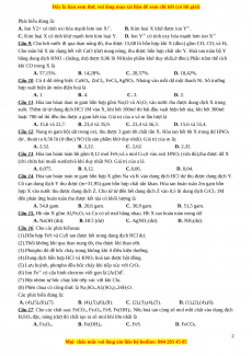 Câu 15. Hh rắn X gồm Al,Fe2O3 và Cu có số mol bằng nhau. Hh X tan hoàn toàn trong dd A. NaOH (dư). B. HCl (dư) C. AgNO3 (dư). D. NH3(dư).