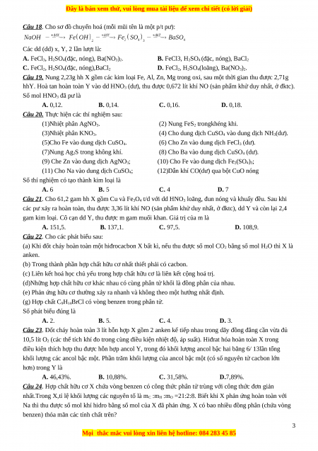 Câu 18. Cho sơ đồ chuyển hoá (mỗi mũi tên là một p/t pư):
