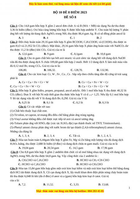 BỘ 10 ĐỀ 8 ĐIỂM 2023 ĐỀ SỐ 8