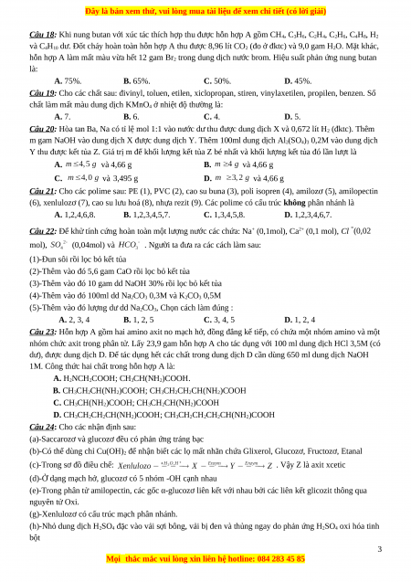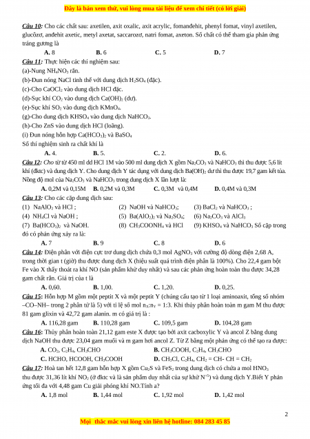 Câu 10: Cho các chất sau: axetilen, axit oxalic, axit acrylic, fomanđehit, phenyl fomat, vinyl axetilen,