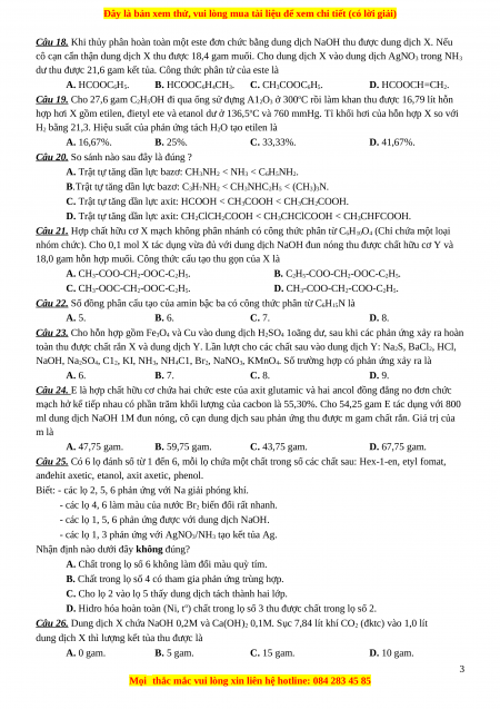 Câu 28. Hợp chất X có công thức C2H7NO2 có phản ứng tráng gương, khi phản ứng với dung dịch NaOH