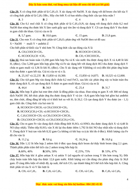 Câu 29. X có công thức phân tử là C9H12O. X tác dụng với NaOH. X tác dụng với dd brom cho kết tủa Y