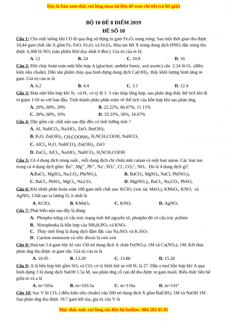 BỘ 10 ĐỀ 8 ĐIỂM 2019 ĐỀ SỐ 10