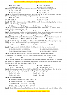 Câu 23: Dãy chỉ chứa những amino axit có số nhóm amino và số nhóm cacboxyl bằng nhau là A. Gly, Ala, Glu, Tyr B. Gly, Val, Tyr, Ala C. Gly, Val , Lys, Ala D. Gly, Ala, Glu, Lys