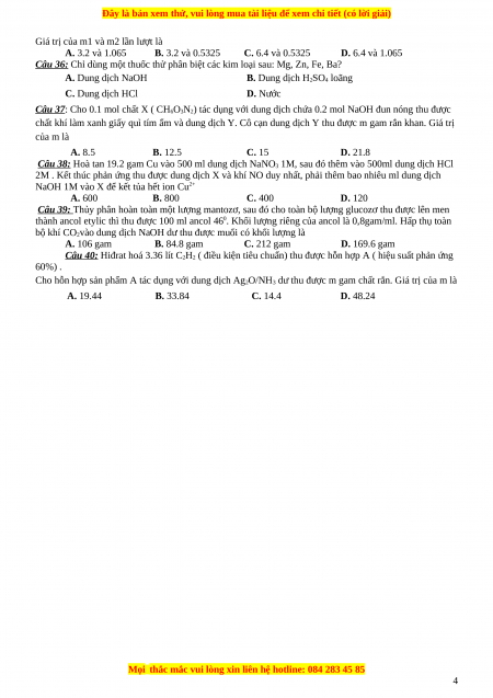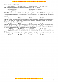 Câu 36: Chỉ dùng một thuốc thử phân biệt các kim loại sau: Mg, Zn, Fe, Ba? A. Dung dịch NaOH