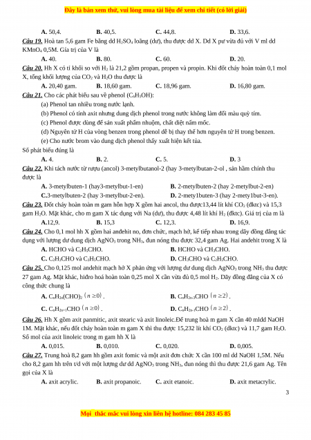 Câu 20. Hh X có tỉ khối so với H2 là 21,2 gồm propan, propen và propin. Khi đốt cháy hoàn toàn 0,1 mol