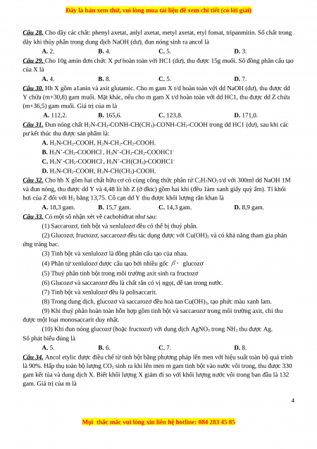 Câu 31. Đun nóng chất H2N-CH2-CONH-CH(CH3)-CONH-CH2-COOH trong dd HC1 (dư), sau khi các