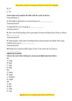 7. Flight FR3421 now boarding at _______________ . Announcement C
