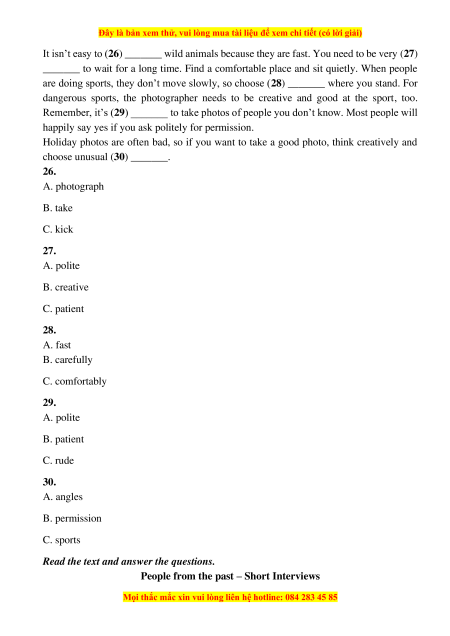25. More and more Vietnamese people are _________ in learning English. A. happy B. busy C. interested READING