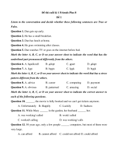Đề thi cuối kì 1 Friends Plus 8 Đề 1