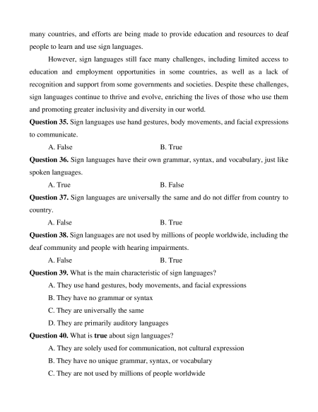 Question 30. A. expresses B. communicates C. thinks D. believes Question 31. A. played B. made C. based D. found