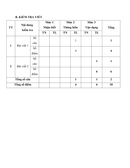 B. PHẦN KIỂM TRA VIẾT (10 điểm)