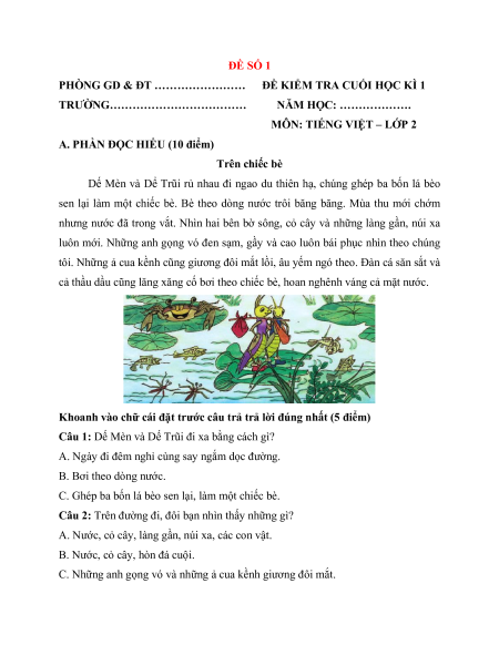 A. PHẦN ĐỌC HIỂU (10 điểm) Trên chiếc bè