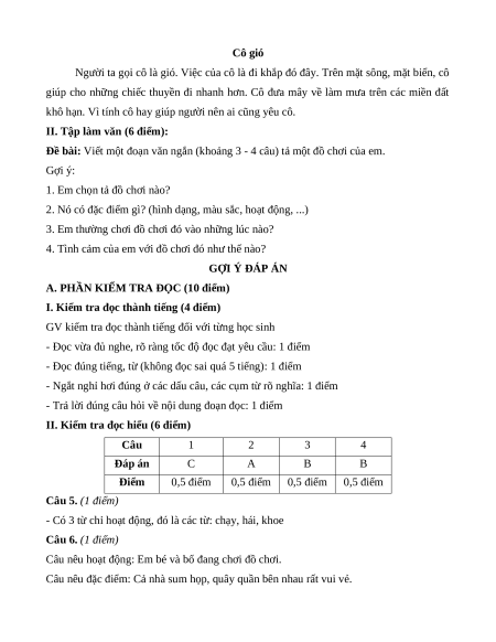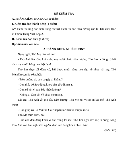 A. PHẦN KIỂM TRA ĐỌC (10 điểm)