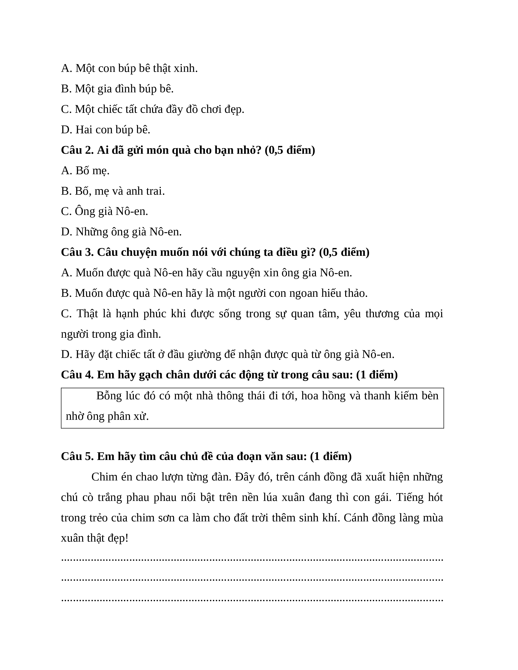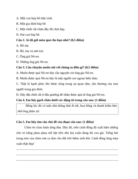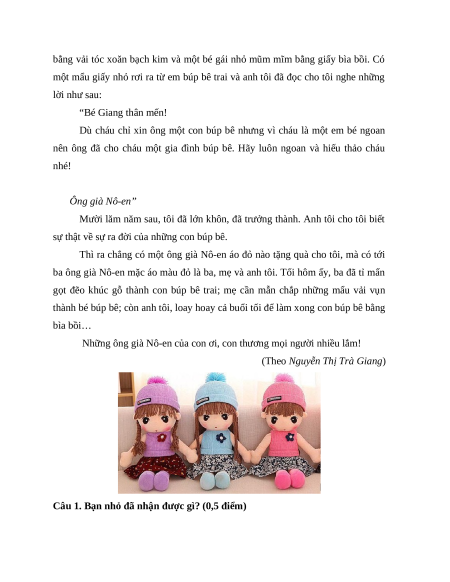 Câu 1. Bạn nhỏ đã nhận được gì? (0,5 điểm)