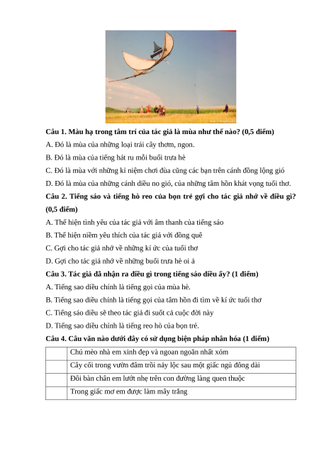 Câu 1. Màu hạ trong tâm trí của tác giả là mùa như thế nào? (0,5 điểm)