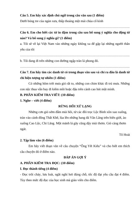 A. PHẦN KIỂM TRA ĐỌC: (10 điểm)
