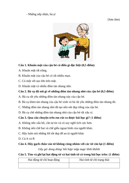 Câu 2. Bà cụ đã nói gì về những đốm tàn nhang nhỏ của cậu bé (0,5 điểm)