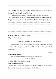 Sau khi HS đọc thành tiếng xong GV đặt 01 câu hỏi để HS trả h Số lời. 4 tiếng điểm Số 2 1 3 câu Đọc Câu 1,2 3 hiểu số Số 1 0,5 1,5 điểm Số 2 2 4 Kiến câu thức Câu 4, 6 5, 7 tiếng số việt Số 2 2,5 4,5 điểm Số 2 1 2 2 8 câu Tổng Số 1 0,5 2 2,5 10 điểm