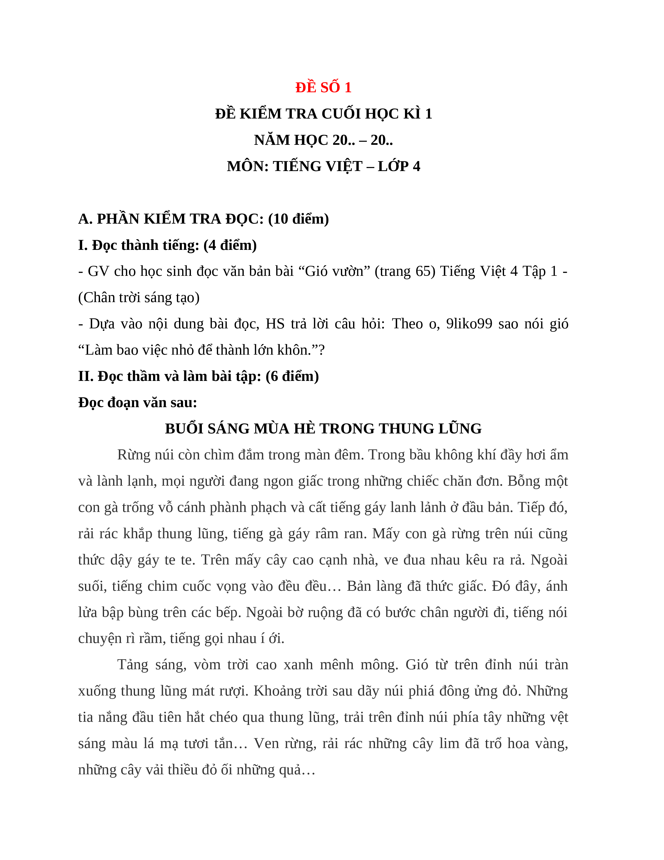 ĐỀ KIỂM TRA CUỐI HỌC KÌ 1