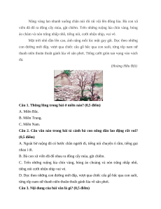 Câu 1. Thũng lũng trong bài ở miền nào? (0,5 điểm) A. Miền Bắc. B. Miền Trung. C. Miền Nam.