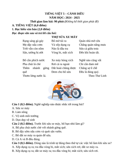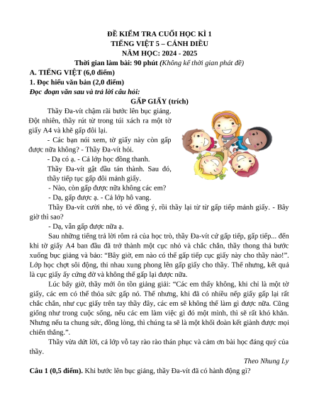 TIẾNG VIỆT 5 – CÁNH DIỀU NĂM HỌC: 2024 - 2025