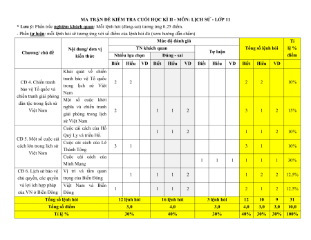 MA TRẬN ĐỀ KIỂM TRA CUỐI HỌC KÌ II - MÔN: LỊCH SỬ - LỚP 11