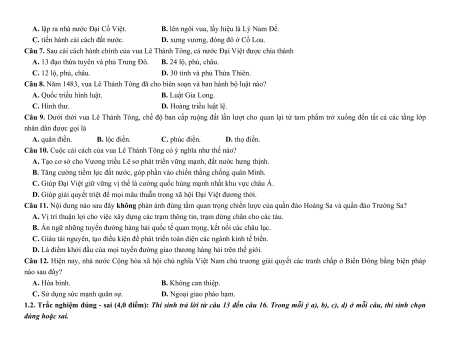 Câu 7. Sau cải cách hành chính của vua Lê Thánh Tông, cả nước Đại Việt được chia thành