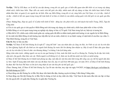 Câu 15. Đọc tư liệu sau đây:
