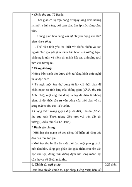 - Có sự sáng tạo trong cách viết. 0,5