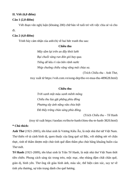 Viết bài Thông hiểu: 1,0 nghị
