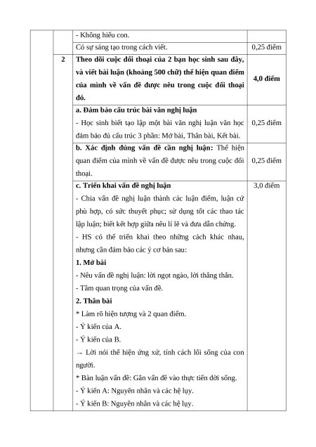 - Có sự sáng tạo trong cách viết. 0,5 Thông hiểu: 1,0