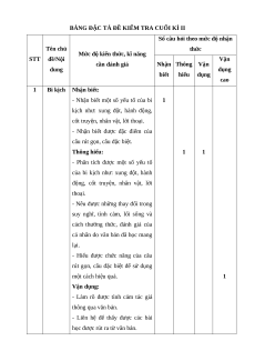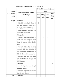 BẢNG ĐẶC TẢ ĐỀ KIỂM TRA CUỐI KÌ II