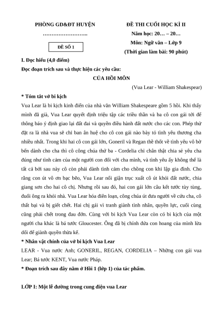 Môn: Ngữ văn – Lớp 9 ĐỀ SỐ 1
