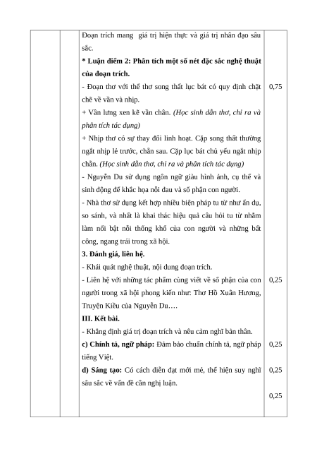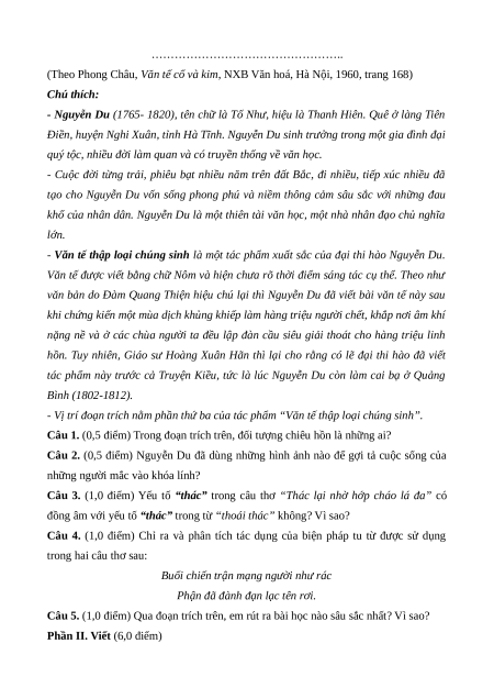 thất lục phân tích một tác phẩm văn học bát) Vận dụng cao: 0,5
